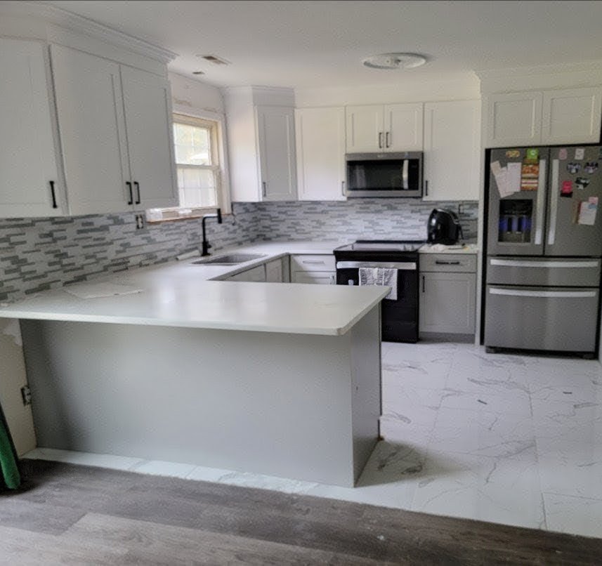 Services Include: Full cabinet and countertop replacement; appliance system installation; backsplash tiling; and "beauty-trim" electrical and plumbing updates.